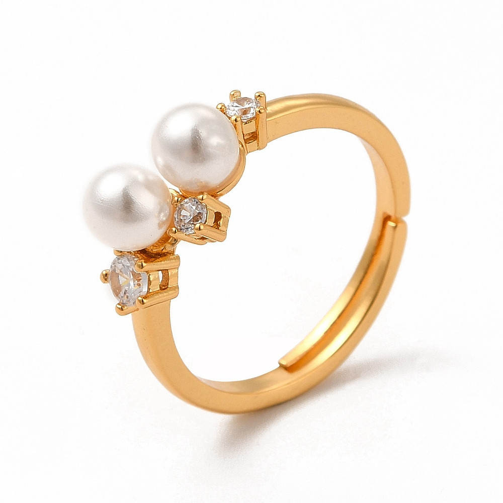 18K Aranyozott Cirkónia Strasszos Kagyló Gyöngyös Gyűrű