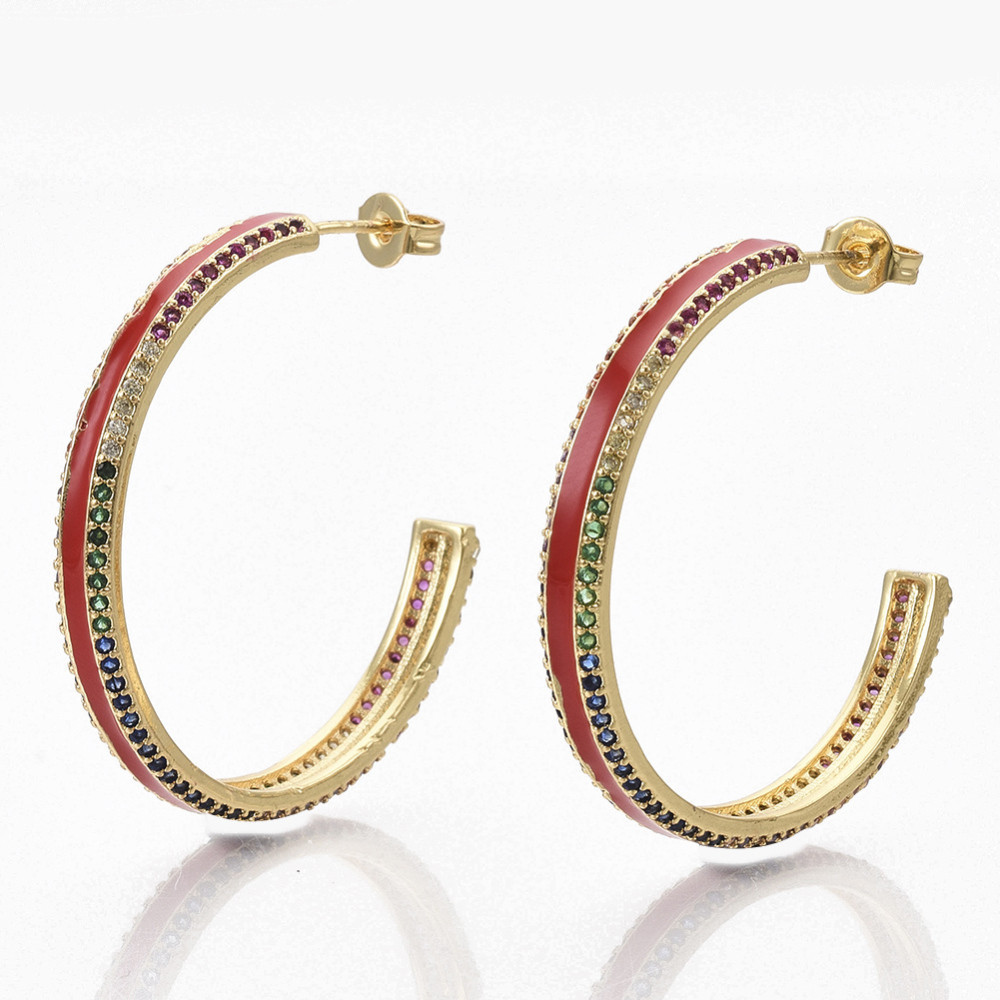 18K Aranyozott Tűzzománc Cirkónia Strasszos Fülbevaló