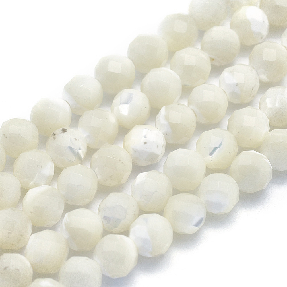 Fazettált Fehér Kagyló (2) Gyöngy 6mm