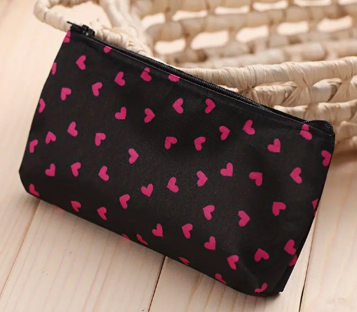 Fekete Szíves Kistáska Neszeszer Tároló Kozmetikai Táska 19x11cm