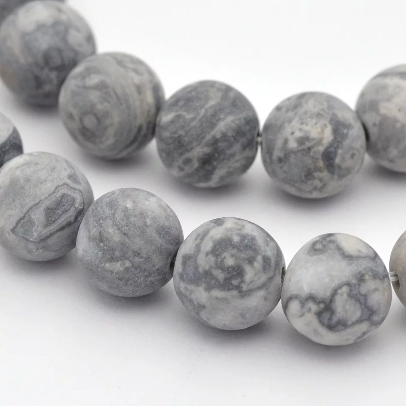 Matt Térkép Jáspis Ásványgyöngy Gyöngyfüzér 6mm