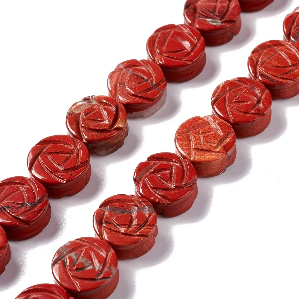 Vörös Jáspis Virág Rózsa Ásványgyöngy Gyöngyfüzér 14x6mm