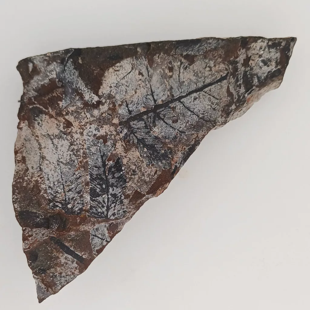 Megkövesedett Páfránylevél Lenyomat Fosszília Kőzetben (14) ~88x50x15mm Pécs Magyarország Jura Kor