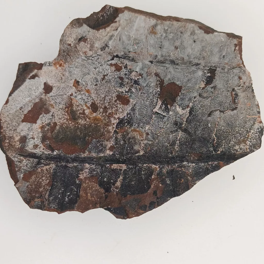 Megkövesedett Páfránylevél Lenyomat Fosszília Kőzetben (17) ~90x72x12mm Pécs Magyarország Jura Kor