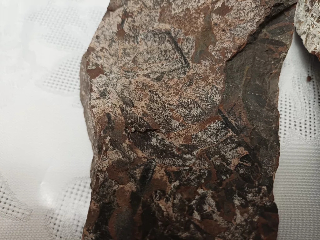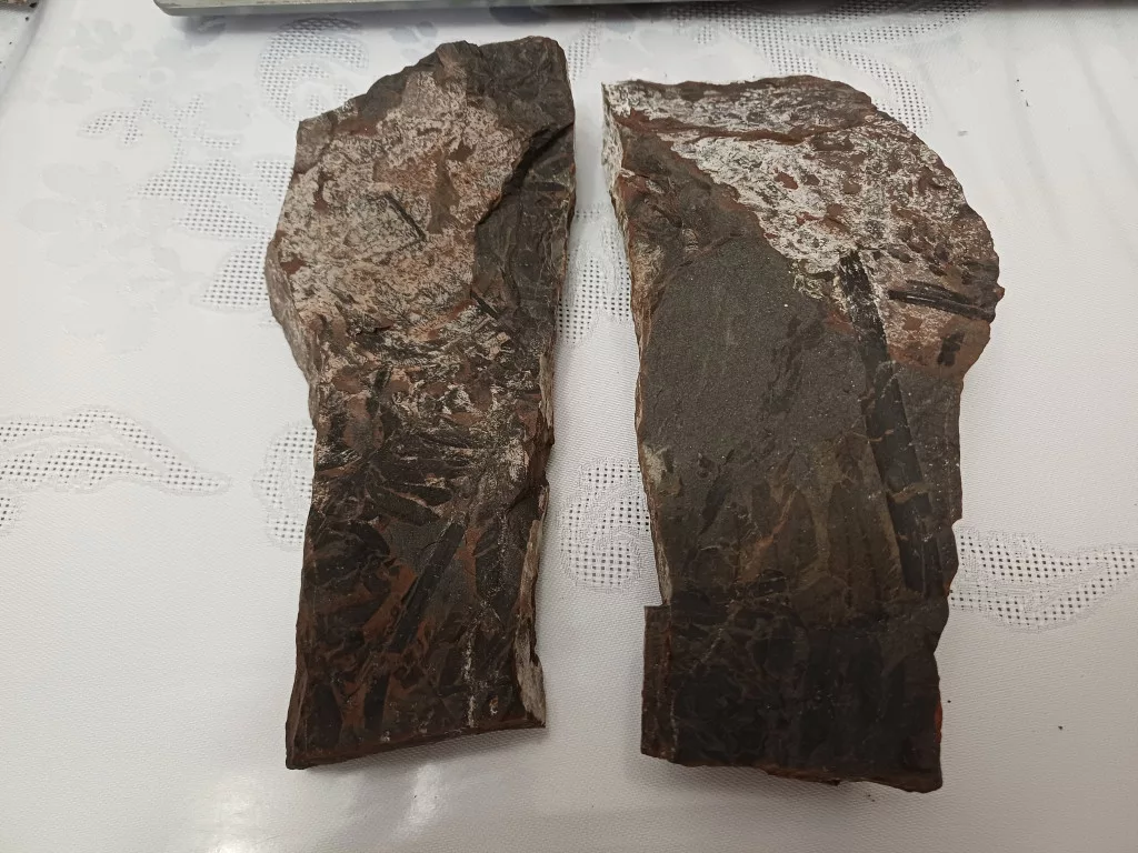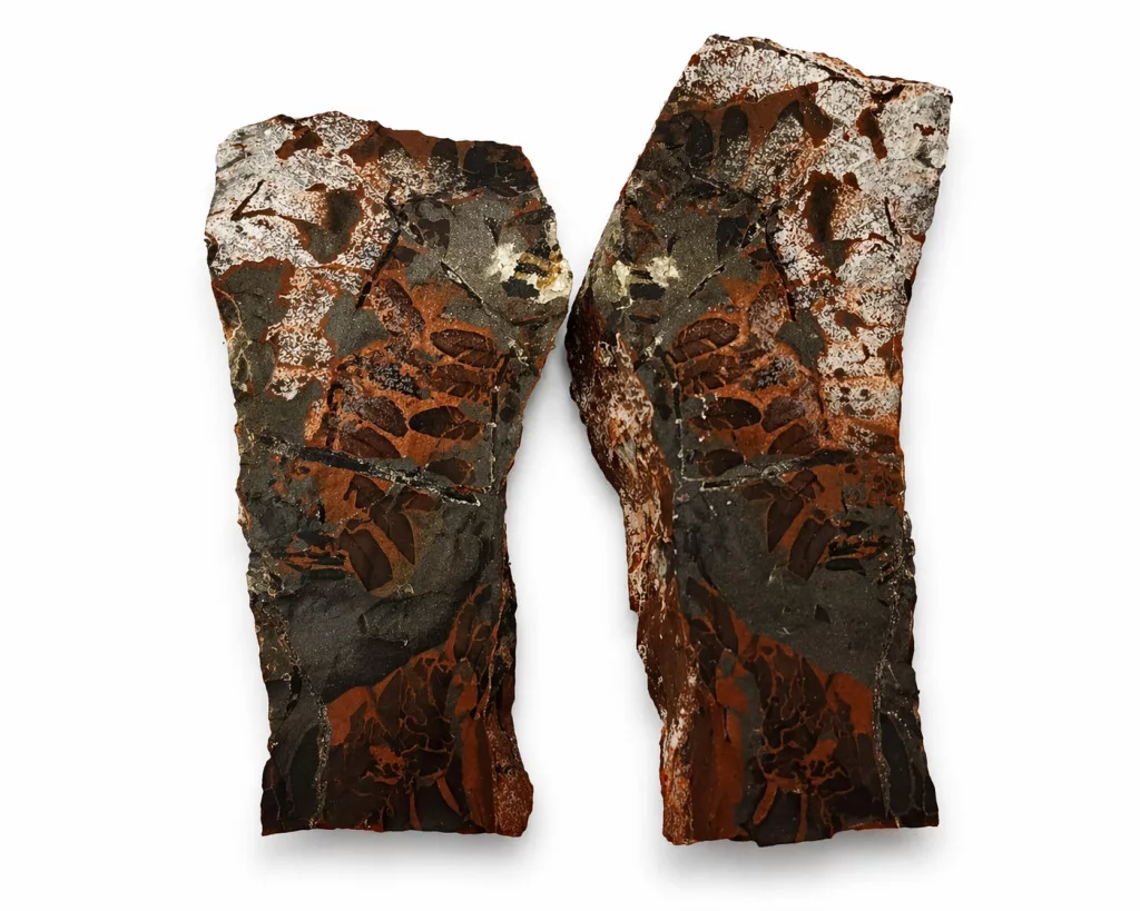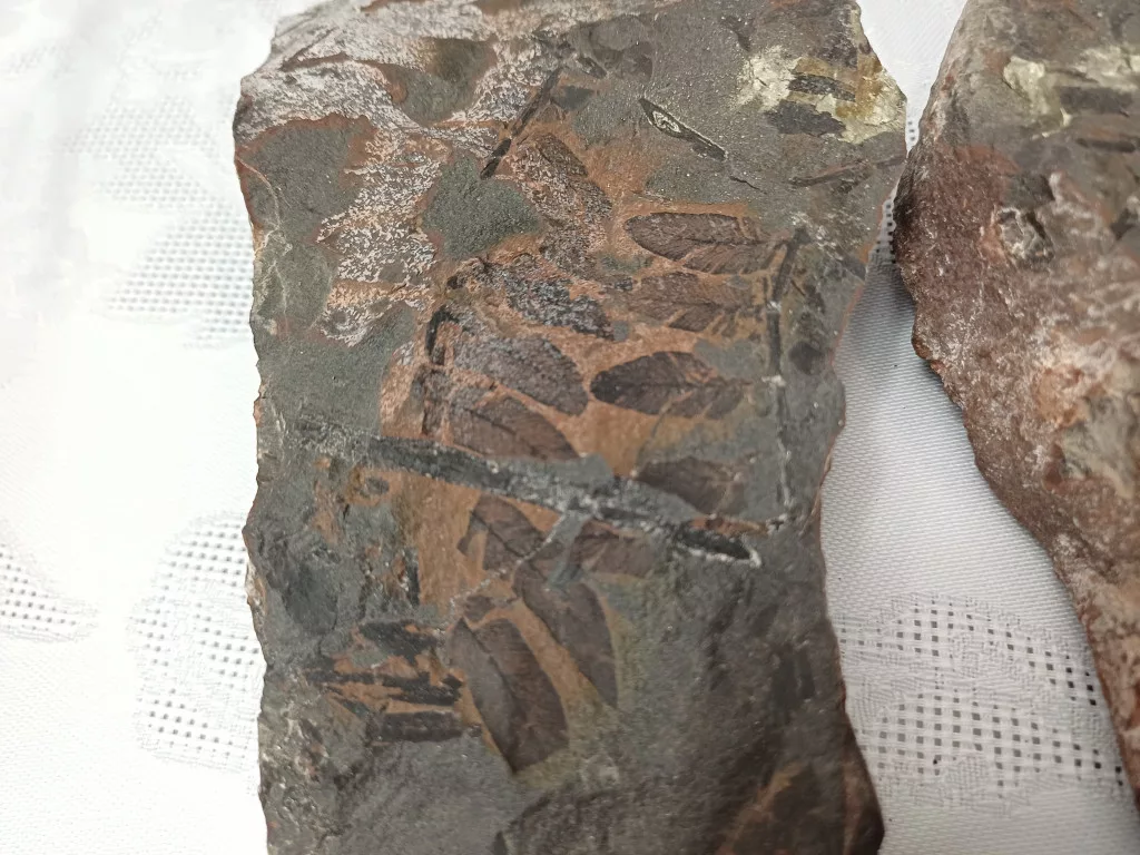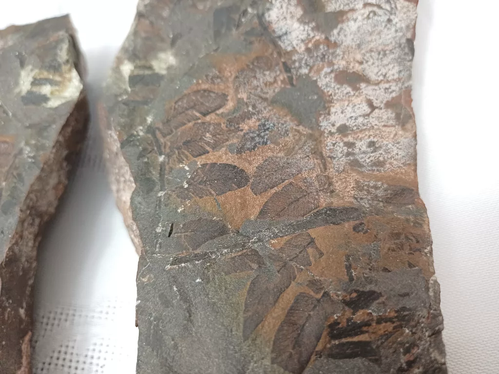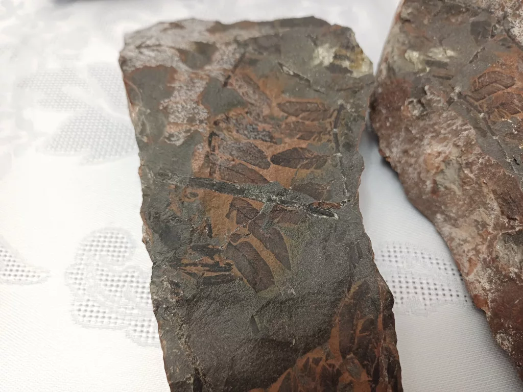 Megkövesedett Páfránylevél Lenyomat Fosszília Egész Kőzetben (2) ~190x90x40mm Pécs Magyarország Jura Kor