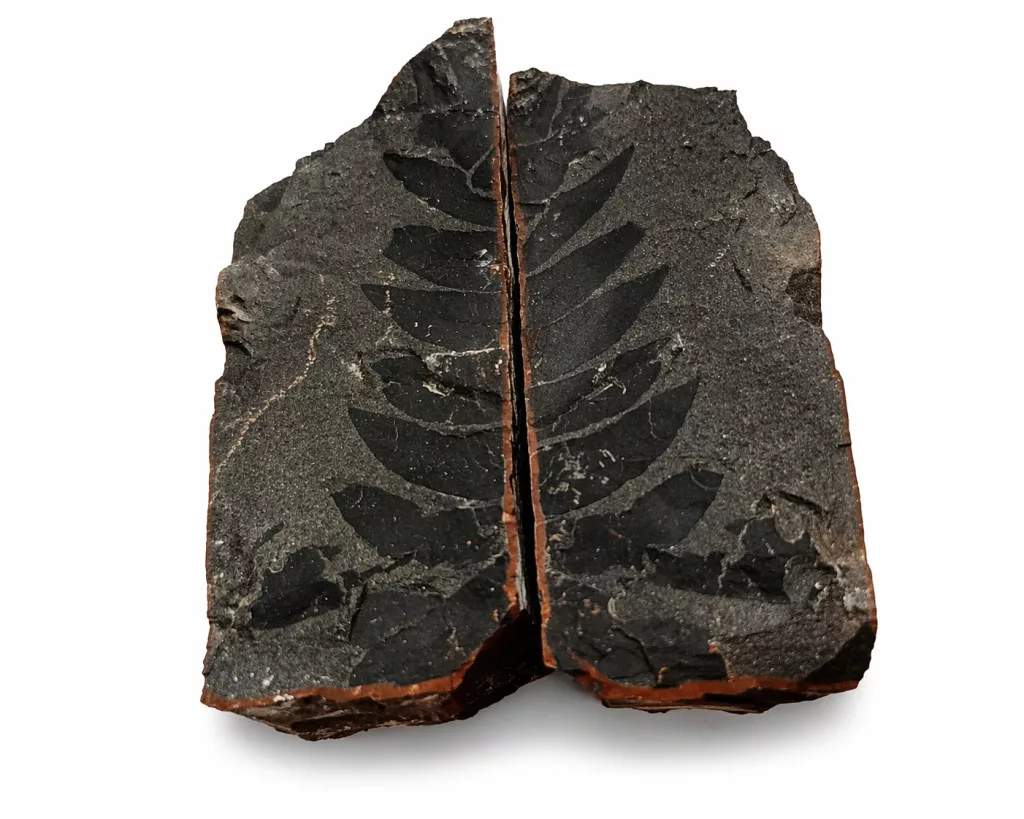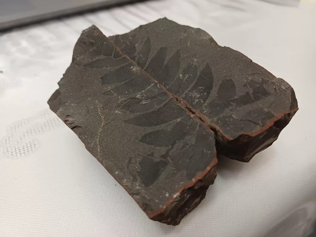 Megkövesedett Páfránylevél Lenyomat Fosszília Egész Kőzetben (3) ~90x95x60mm Pécs Magyarország Jura Kor