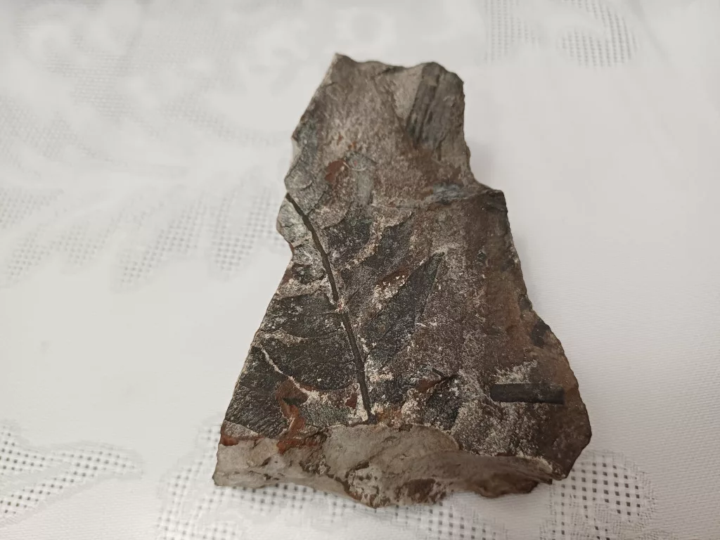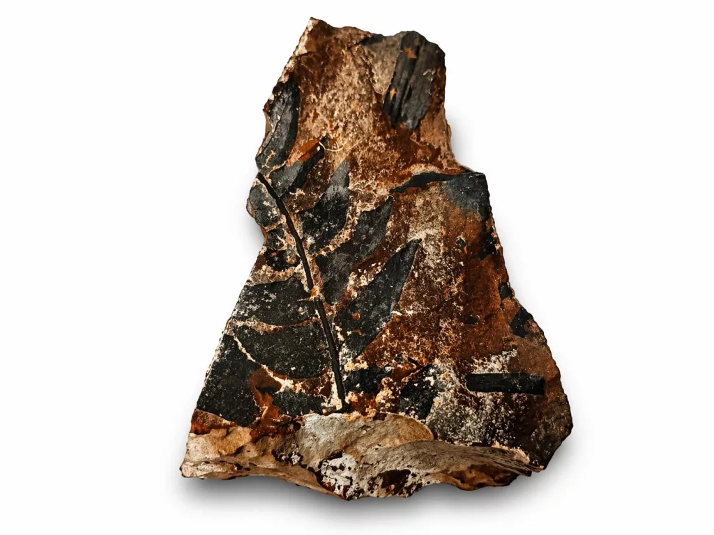 Megkövesedett Páfránylevél Lenyomat Fosszília Kőzetben (4) ~90x60x30mm Pécs Magyarország Jura Kor