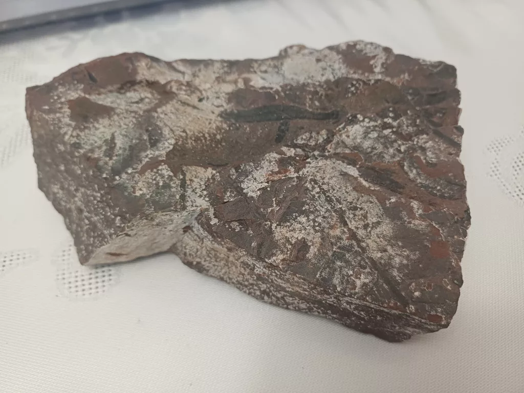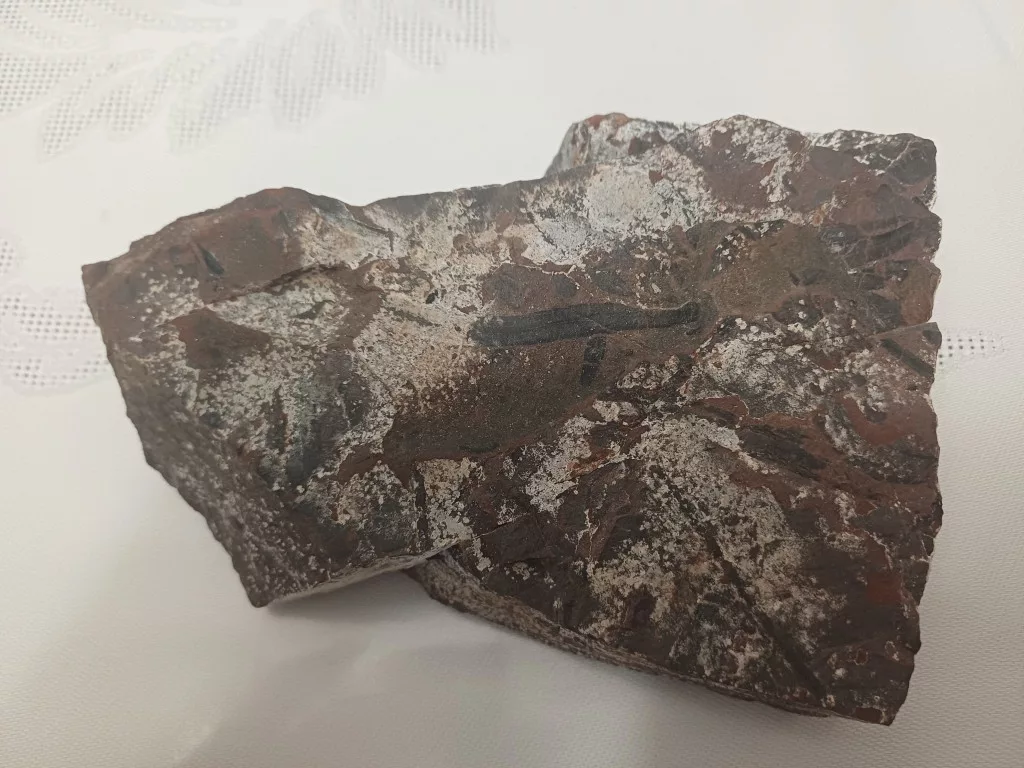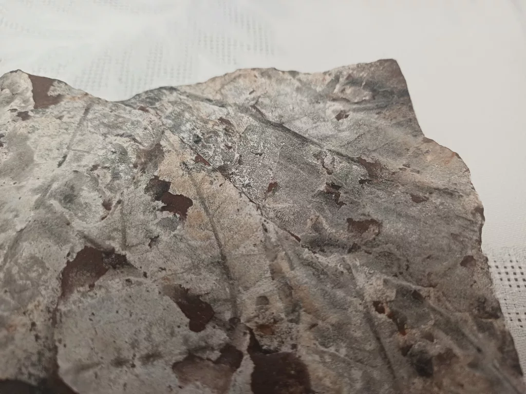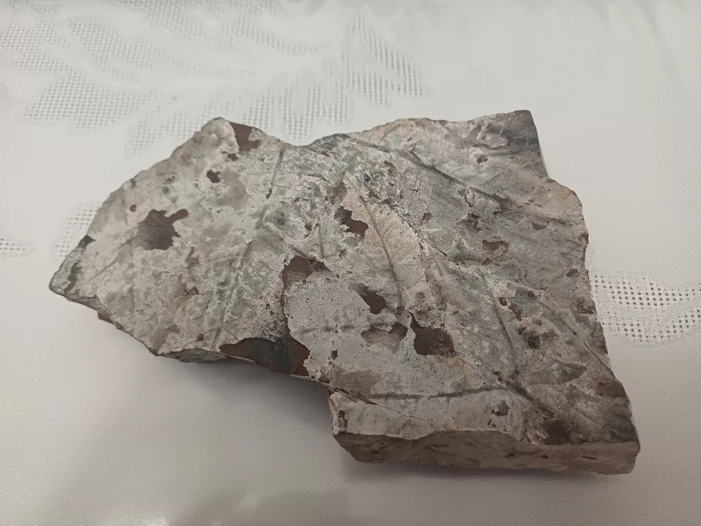 Megkövesedett Páfránylevél Lenyomat Fosszília Kőzetben (8) ~140x100x35mm Pécs Magyarország Jura Kor