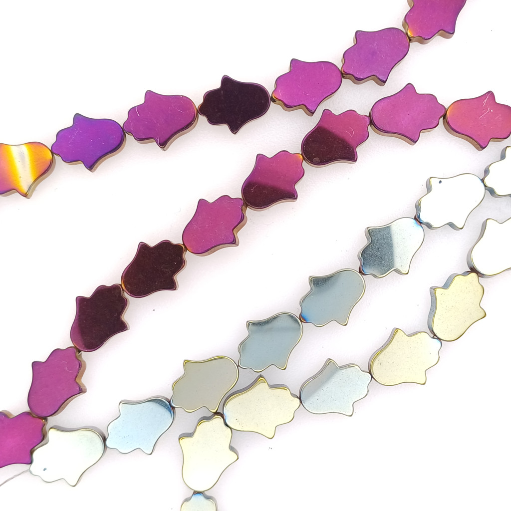 Szivárványos Ezüst Hematit Hamsa Kéz Ásványgyöngy 13x10,5mm